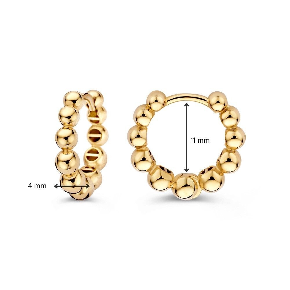 Speelse gouden oorringen met gouden bolletjes.